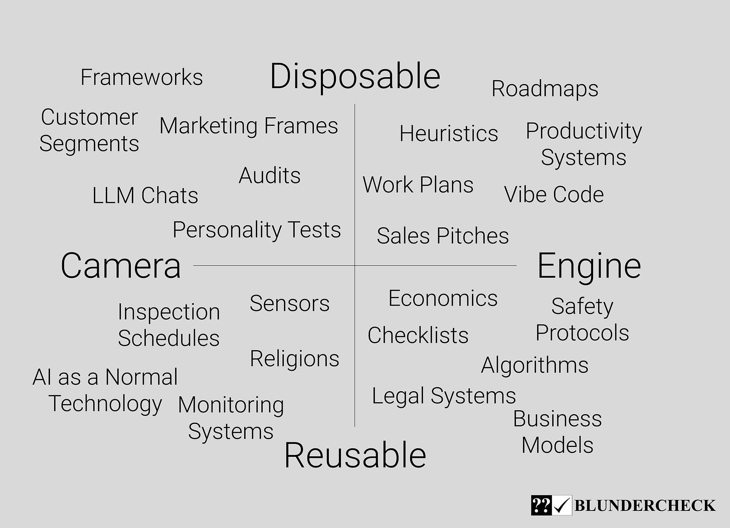 Reusable engines are what everyone wants. A business model that churns out profits. An economic theory that guides monetary policy. Reliable mechanisms for public health and safety. On the flip side you have disposable engines – which, I will argue, are very underrated. Things like rules of thumb, hacks, sales scripts, vibe code, prototypes, experimental protocols, personal grudges.